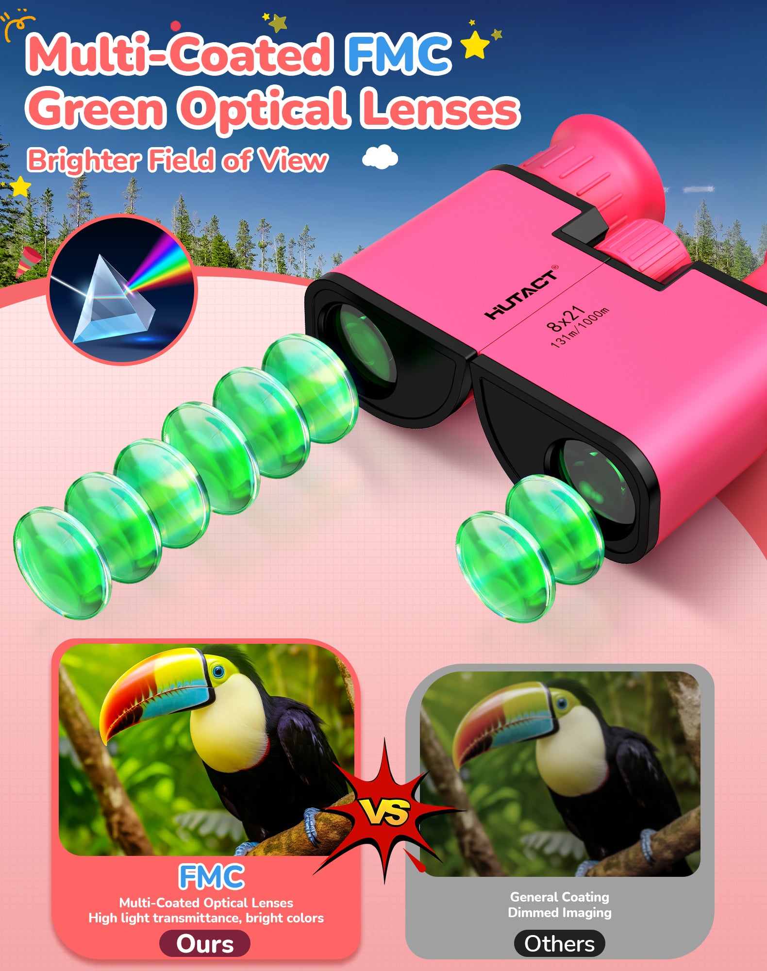 - 【Compact & Lightweight Small Binoculars for Children】Designed as compact binoculars with a lightweight 200g body, easy for kids to hold and comfortable for small hands during outdoor activities.