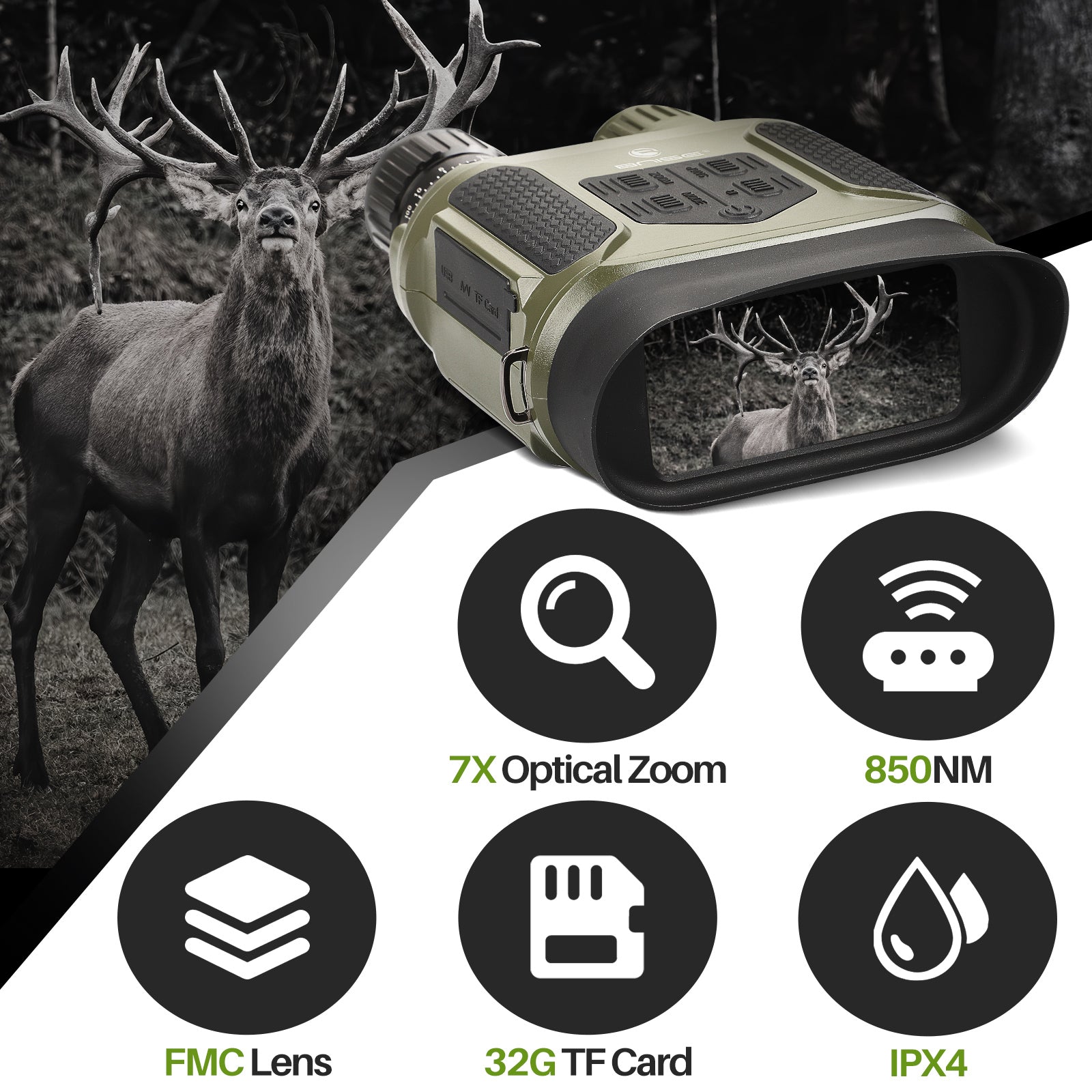High performance digital night vision binocular,clearly see up to 7X magnification in the darkness. 2X digital zoom allows the user to zoom in on an object or zoom out to a wider view.
