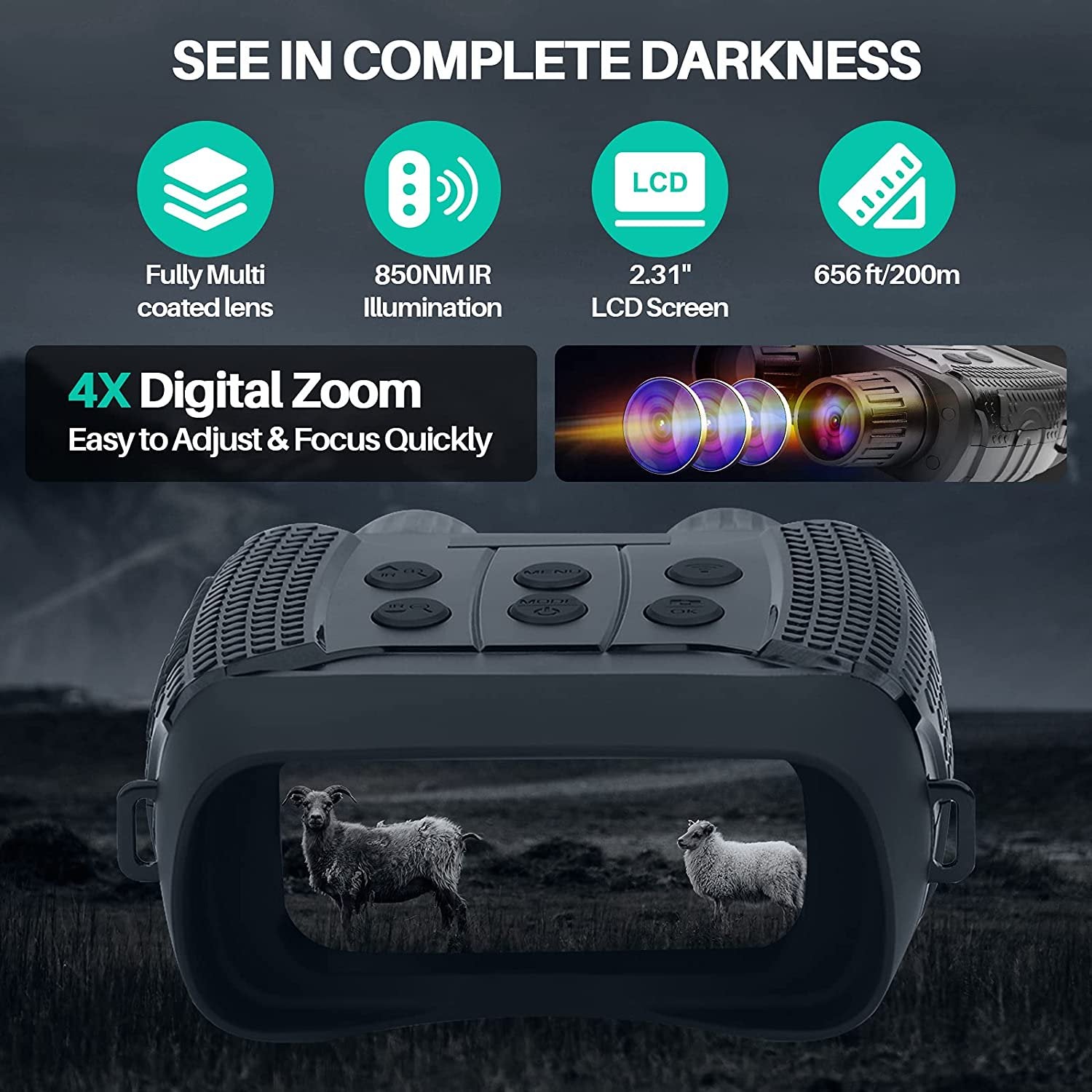 Night Vision Goggles -4x Digital Zoom Binoculars with Night Vision for Total Darkness,with 32GB Memory Card Wifi Remote Control for Photo and Video Storage
