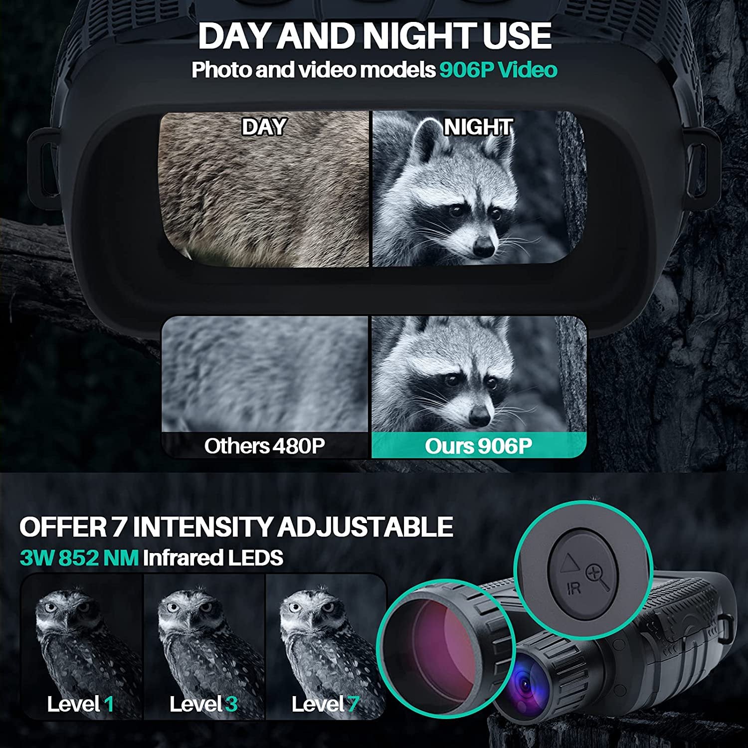 ◆Perfect Accessories:We not only supply 32GB memory cards, but also a sturdy bag. Package Includes: 1 x Night Vision Binoculars, 1 x Durable Case, 1 x Shoulder Strap, 1 x 32GB SD Card, 1 x Data Cable, 1 x User Manual 1 x Cleaning Cloth.If you have any problems with use, please do not hesitate to inform us, we will reply to you within 24 hours and provide you with a solution.