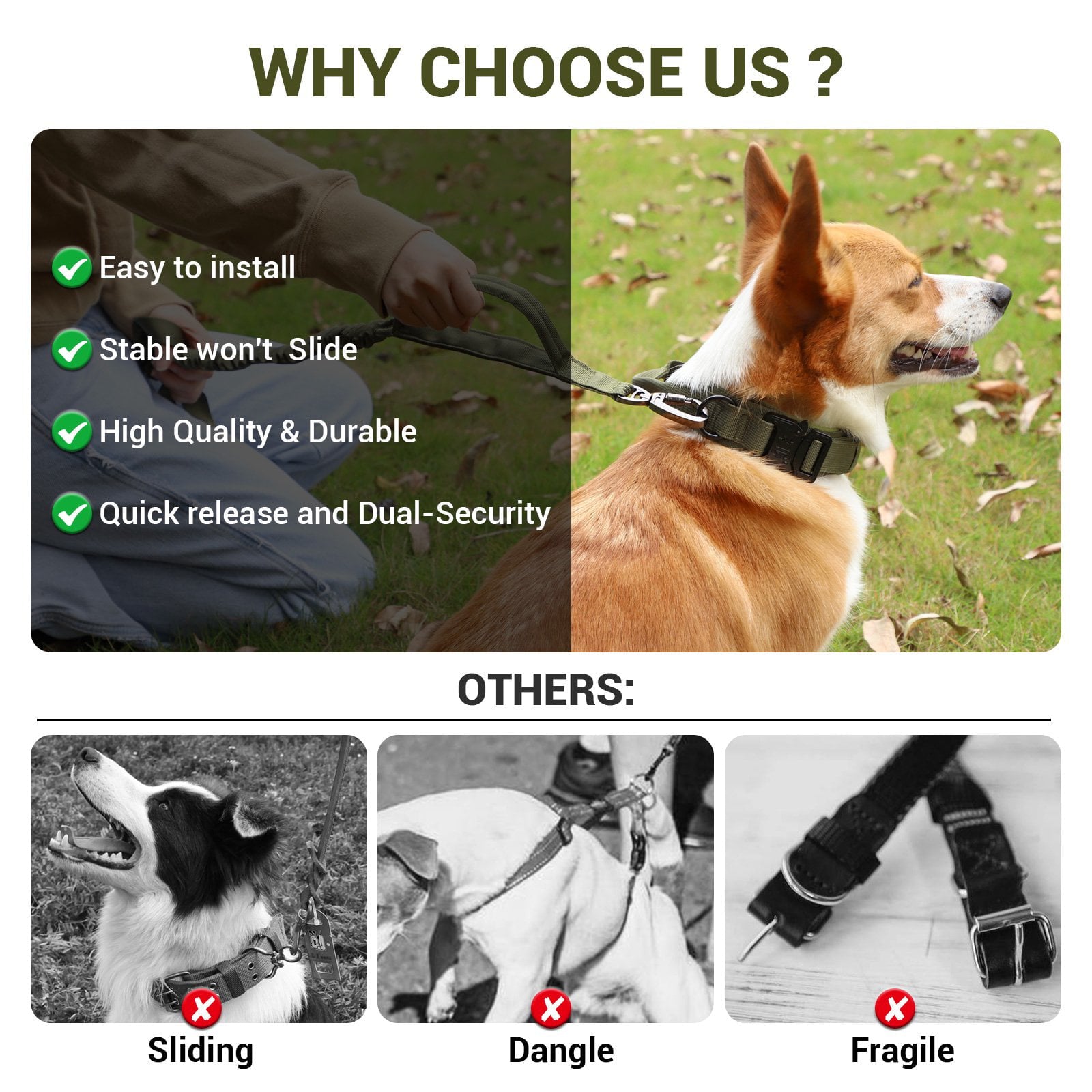 🐕【Multifunctional Control Handle】The Military Training Nylon Dog Collar has special control handle,can efficiently control your dog when training, patrol,hiking, jogging, hunting, camping, working, running, jumping, traveling, camping. fits lots of medium and large dogs like German Shepherd, Border Collie, Rottweiler, Great Dane, Doberman, Golden Retriever, Husky, Labrador, Alaskan Malamute,etc.