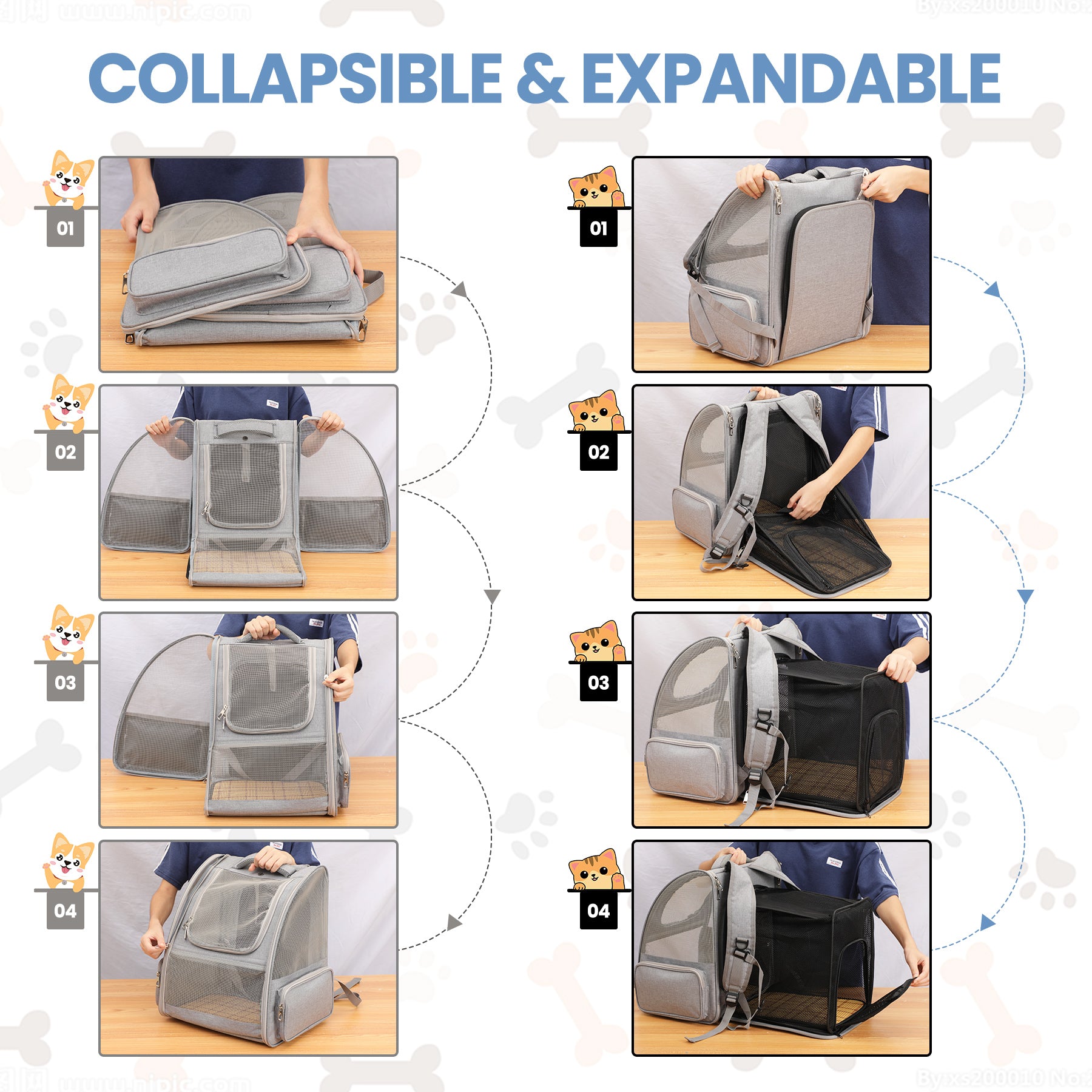 Large Cat Backpack Carrier Expandable Pet Carrier Backpack for Small Dogs Medium Cats Fit Up to 20 Lbs, Dog Backpack Carrier, Foldable Puppy Backpack Carrier for Travel