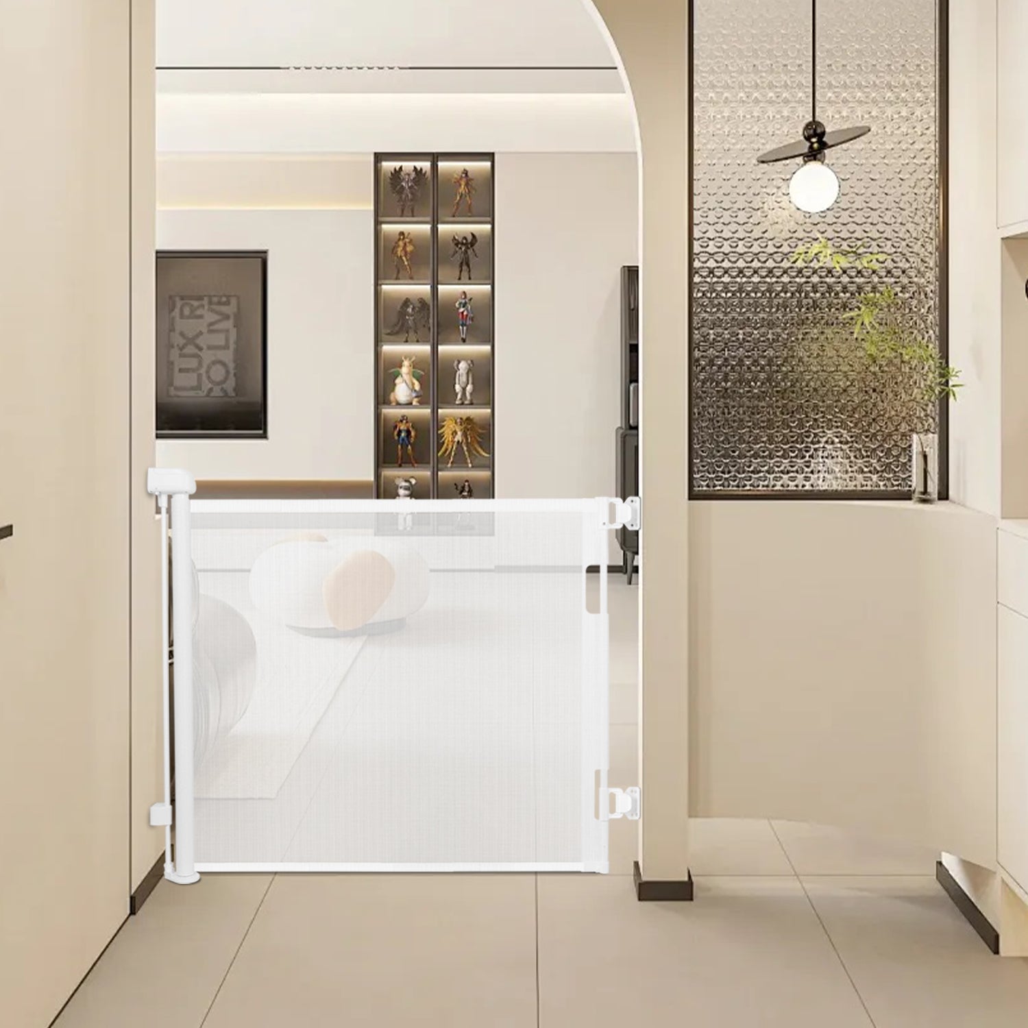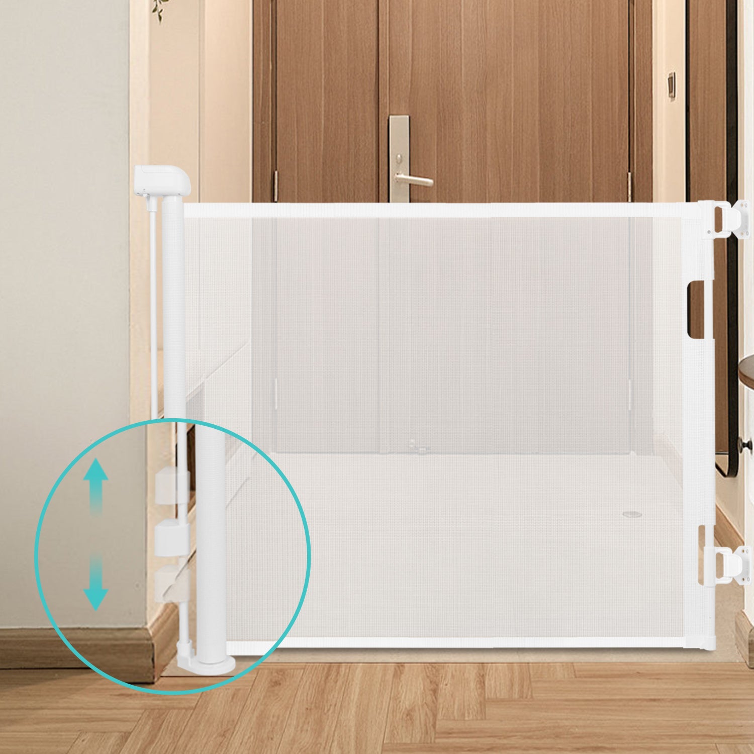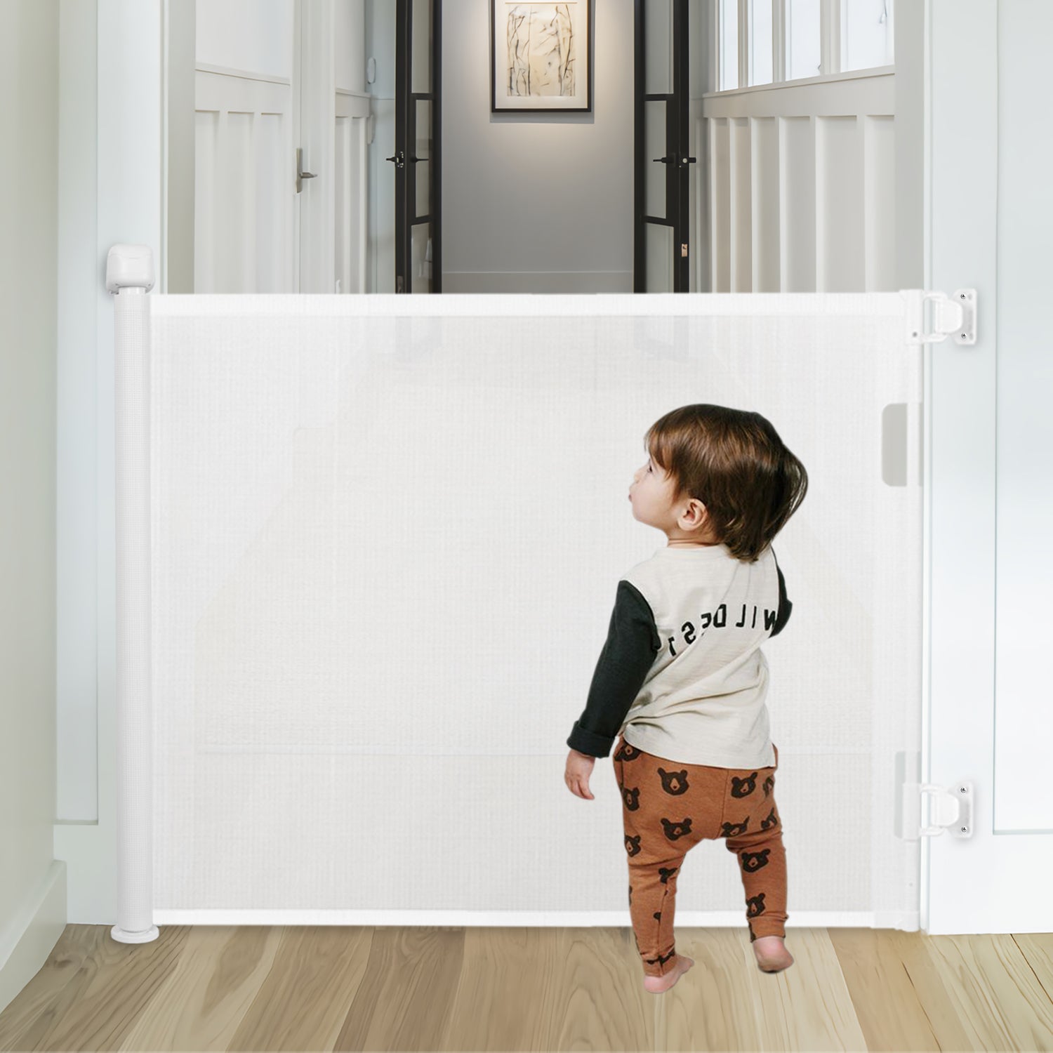 Upgrade 55" Retractable Baby Gate for Stairs, 33" Tall Mesh Baby Gate or Mesh Dog Gate Safety Gate for Doorways, Stairs, Hallways, Indoor/Outdoor(White)