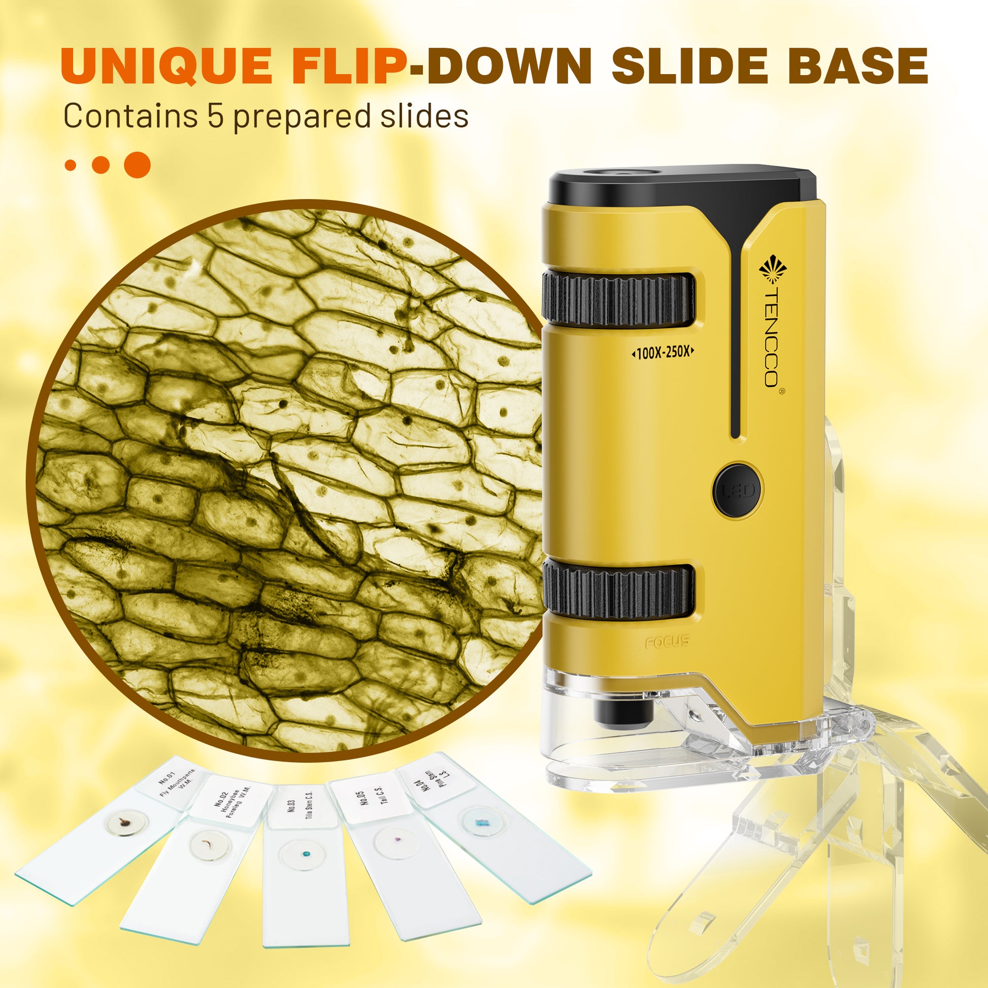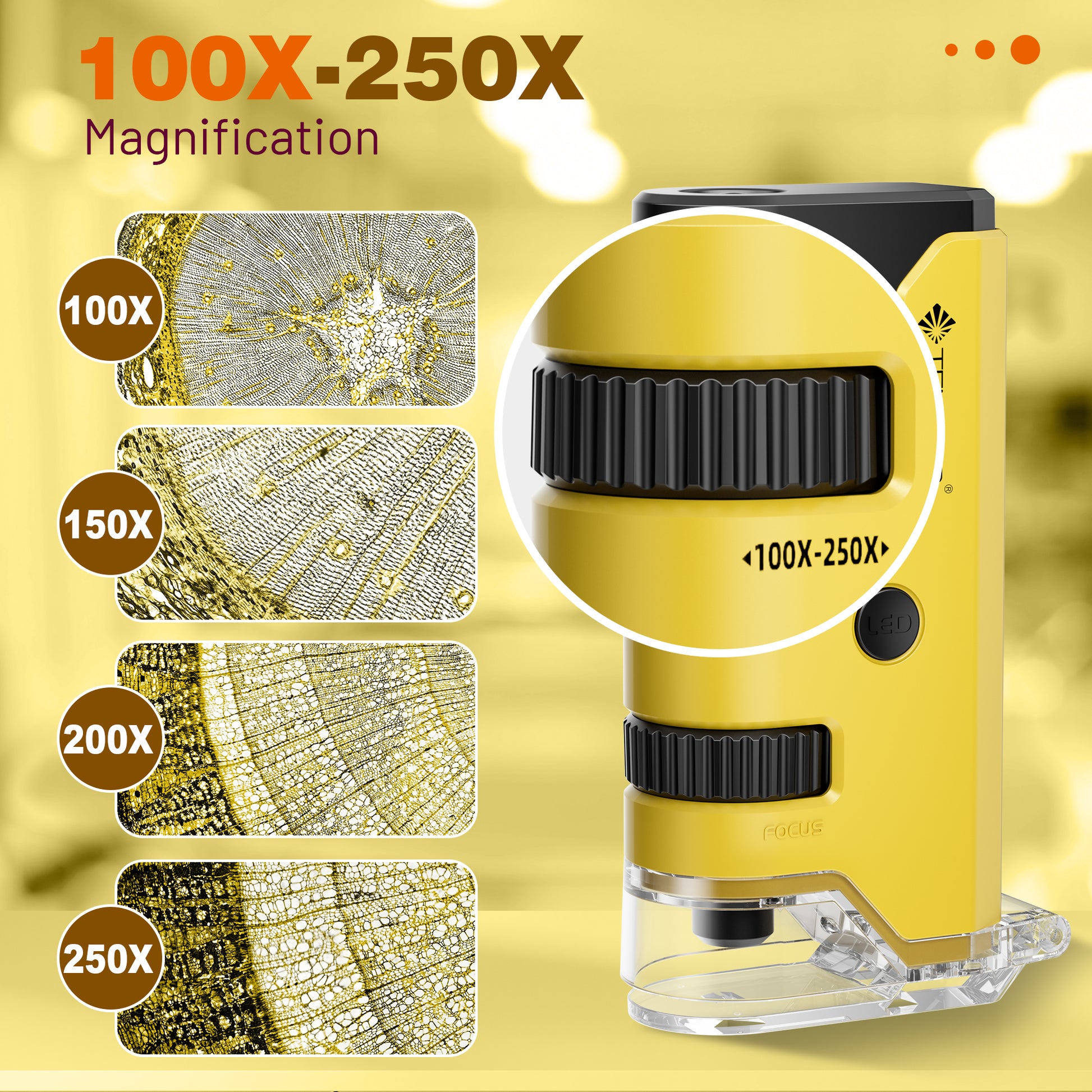 • 250X HD Magnification】BEBANG mini pocket microscope offers 100-250X magnification, you can clearly see more cellular details, meeting the various magnification observation needs of young scientists/children/adults exploring the microscopic world.