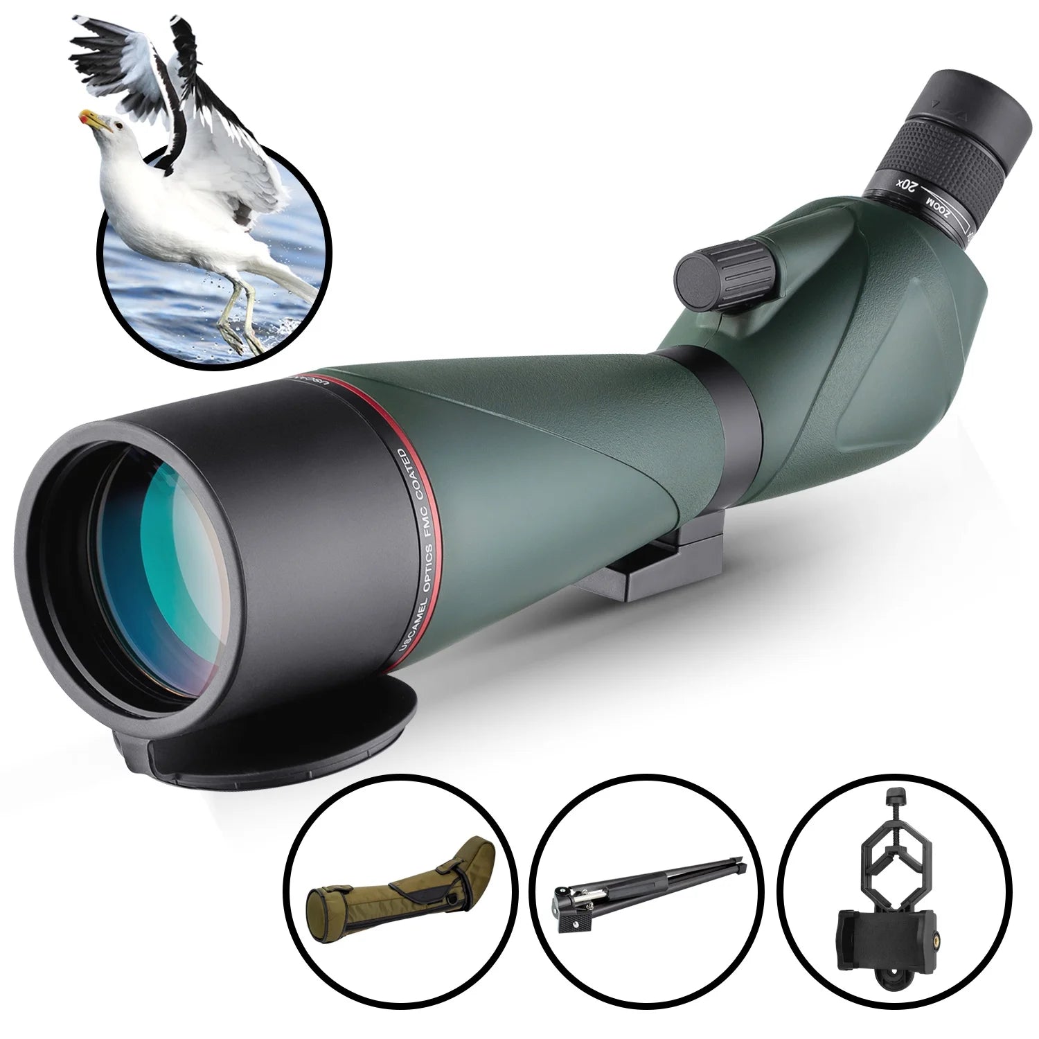• 【Easy Operation】Spotting scope  is equipped with tripod, 45 degree inclined eyepiece ergonomic design provides more comfortable viewing, brings nature scenery closer to you. It's also equipped with a smart phone adapter, you could record high quality images and videos anywhere anytime.