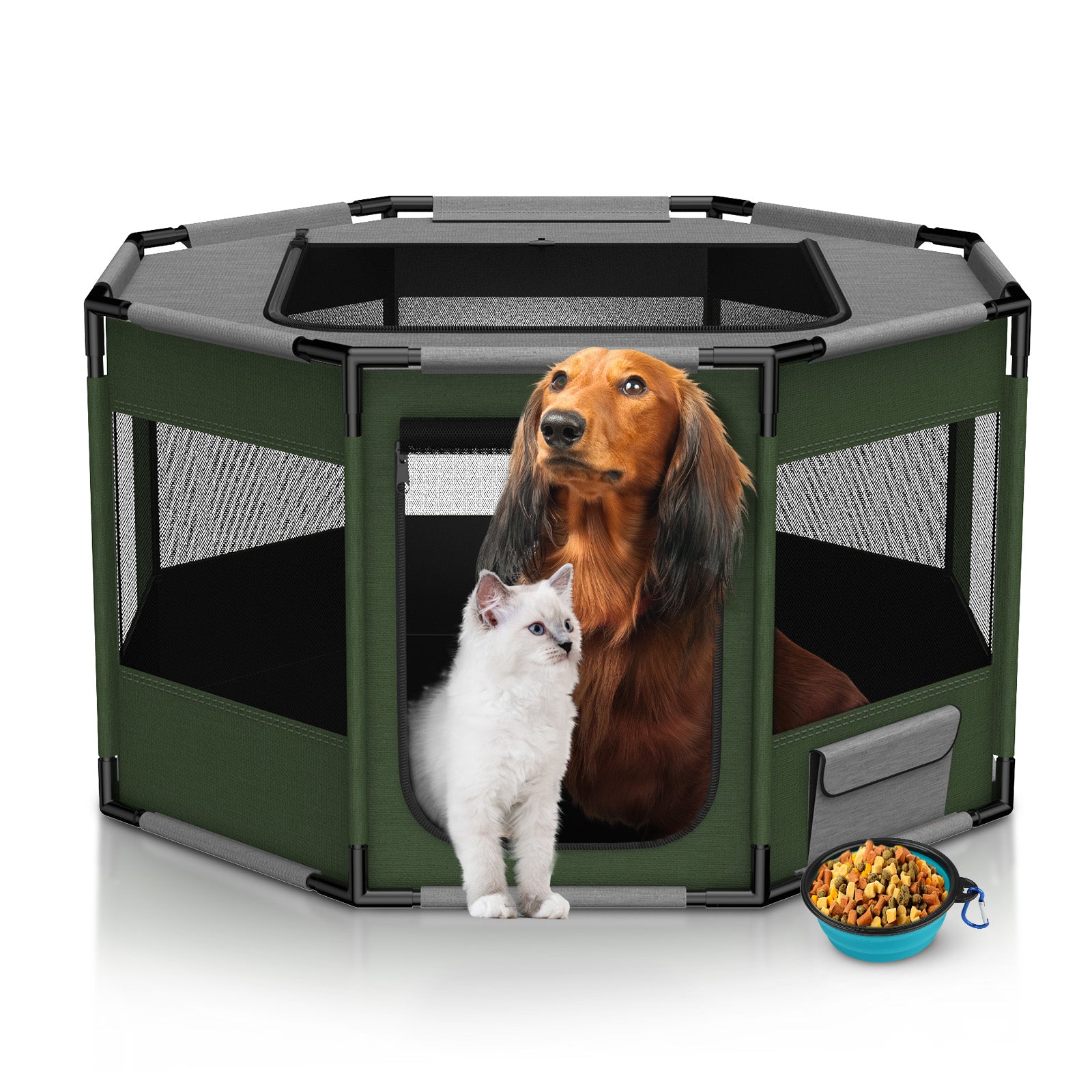 • 【Versatile and Spacious】 Our dog playpens feature protected seams and reinforced corners to ensure your pet's safety. The large, spacious interiors, with zippered openings on the top and sides and rolling up doors, can be used as an open playpen, a sleeping area, a secure nursing spot for dog moms, or a recovery pen.
