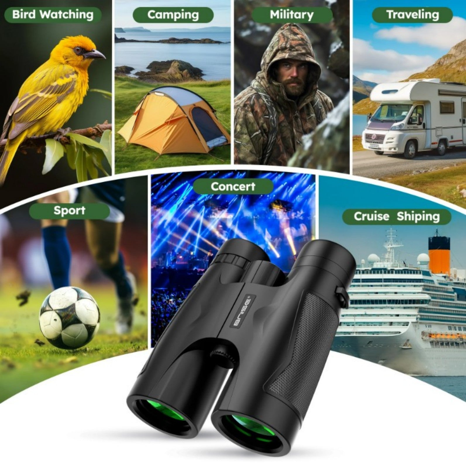 - 【Powerful Binoculars for Adults】 The BNISE Binoculars feature real 10X Magnification and a vast 303 feet/1000yds field for view, making them ideal for outdoor activities like bird watching, hunting mountaineering, hiking, ,stargazing, and watching wildlife and landscapes.Compared to 12X, the golden 10x magnification ensures better stable images with a broader viewing range.