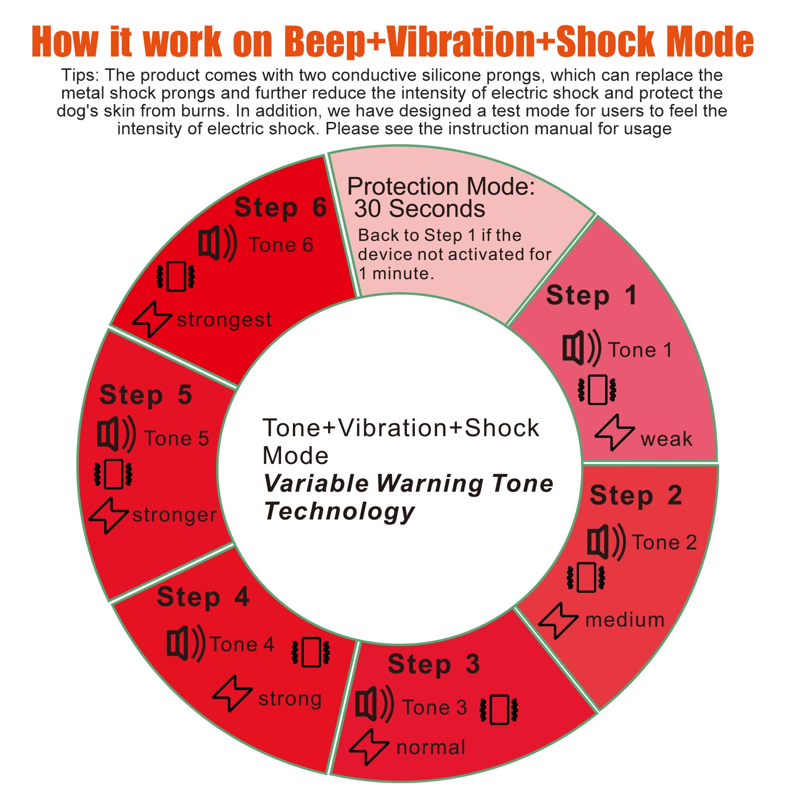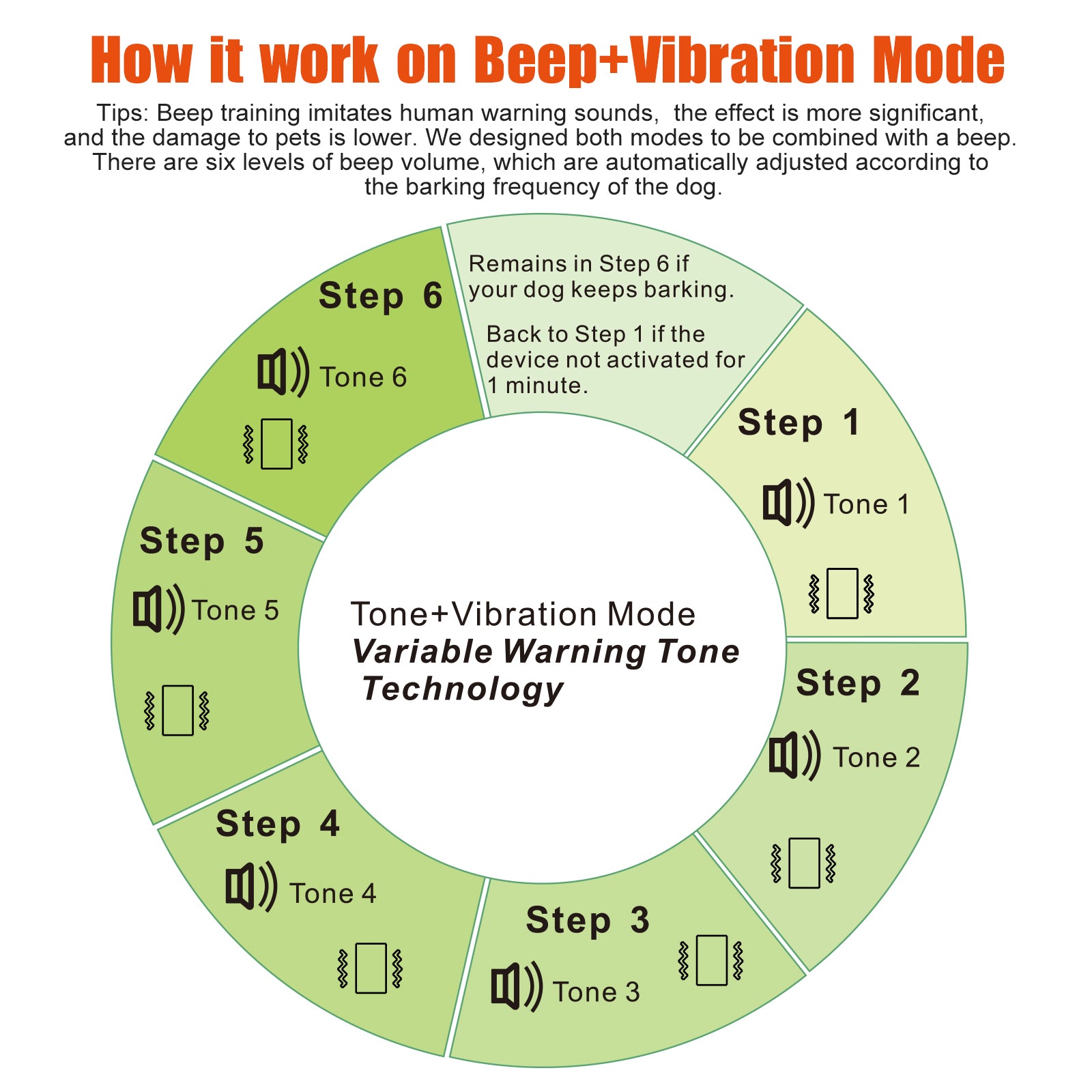 You will find both modes are combined with a beep. Beep training imitates human warning sounds, the effect is more significant, and the damage to pets is lower.