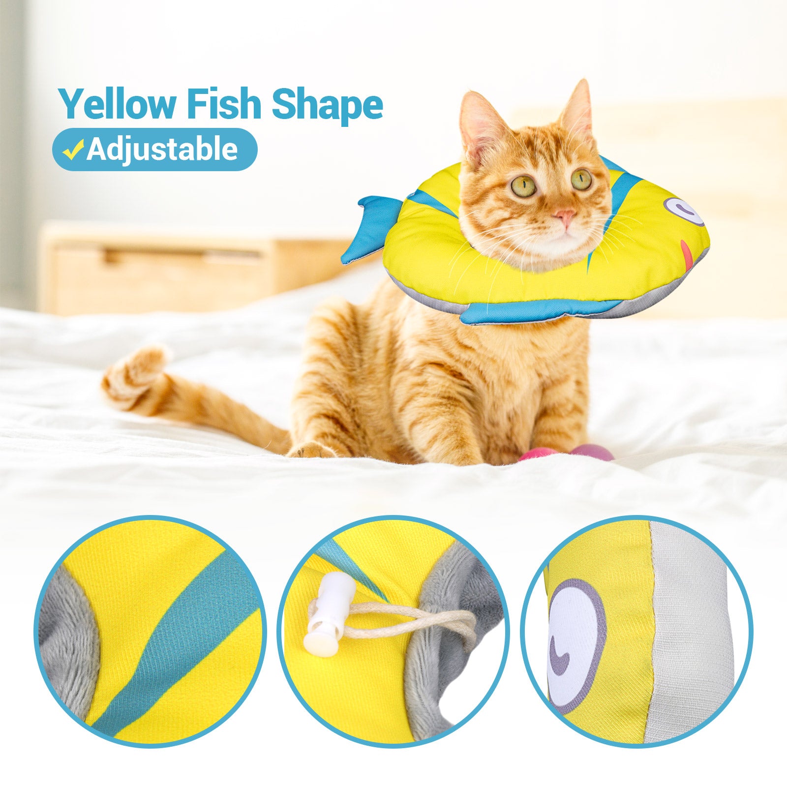 - 【Adorable Costume】Cute yellow fish shape neck cone add more fun and laughter to your cat.The cute fish shape neck cone keeps cats in a good mood, which is benefit for recovery from surgery or wounds.If you have any questions about the product, please feel free to contact us.