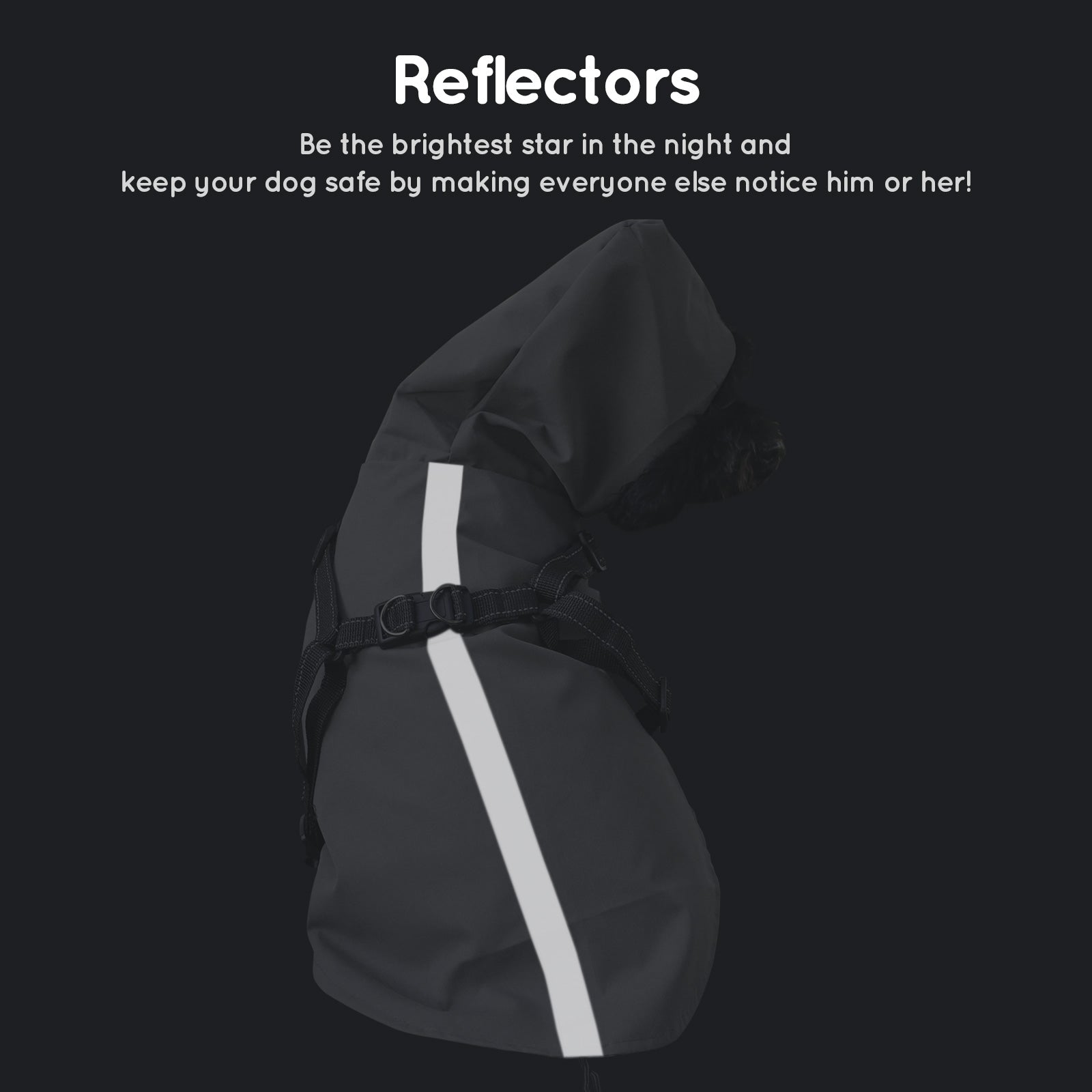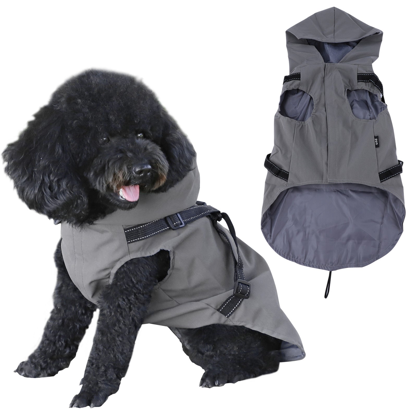 - 【Dog Raincoat with Hood and Harness】With a rain cap to better protect your dog from getting wet in rainy and foggy weather. Additionally the built-in dog harness design can tie the dog leash directly to it just in one step,so you can go out with your dog easily without wearing additional harness.
