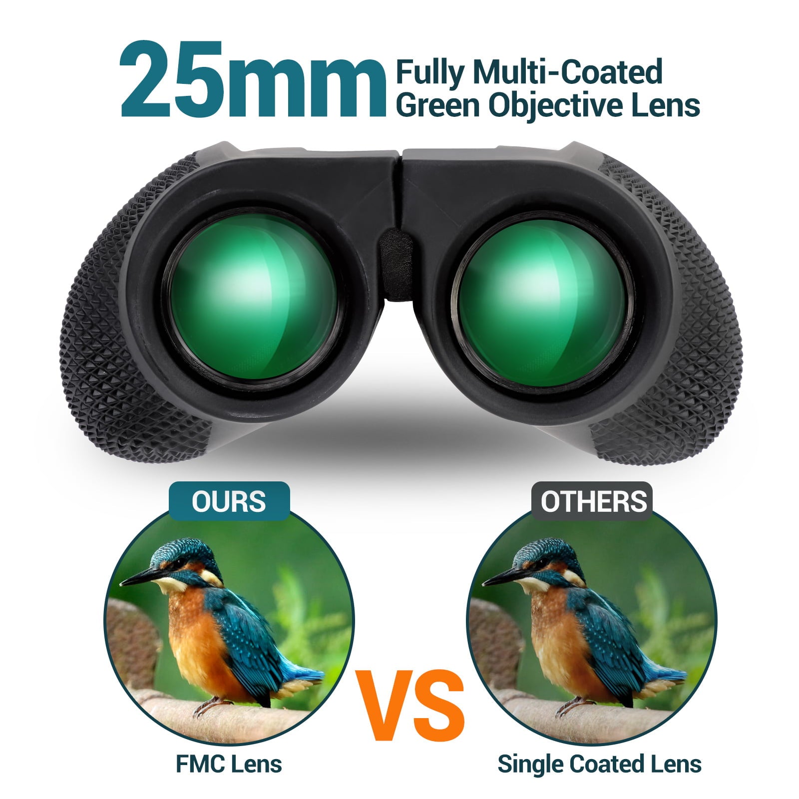 10x25 Bionculars for Adults and Kids, FMC Bak 4 Clear Vision Compact Binoculars for Bird Watching, Outdoor Viewing, Hunting, Theater and Concerts and Sport Games