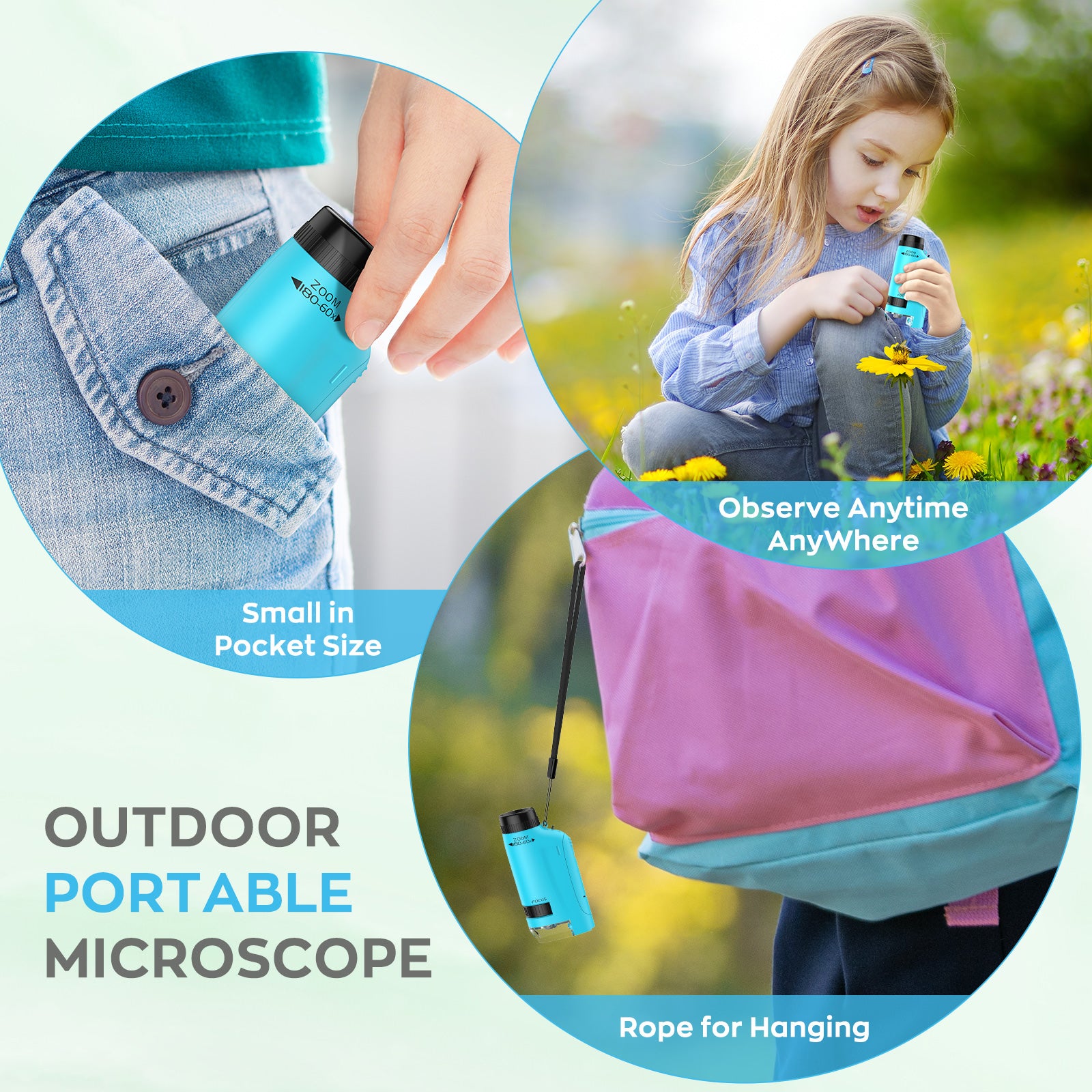 Portable Microscope for Kids Portable Kids Microscope Pocket Microscope Mini Microscope for Kids